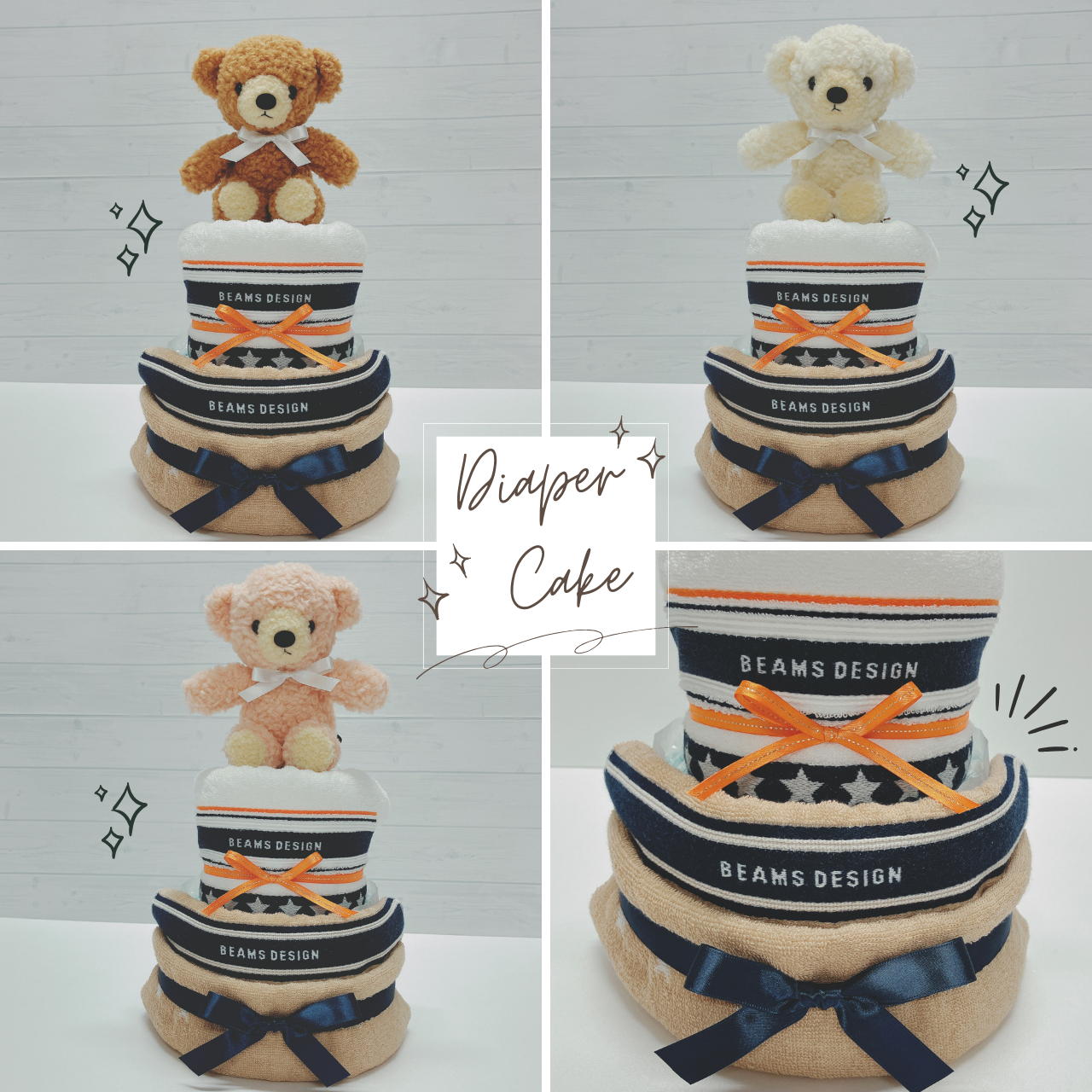 BEAMS DESIGNタオルとフカフカくまさんのおむつケーキ